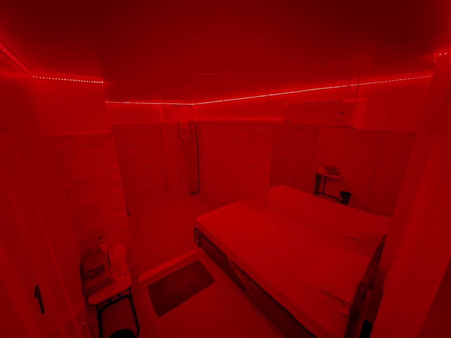 個室のドアを開けると、間接照明がベッドを包み、ジャグジーが小さくライトを反射していました。