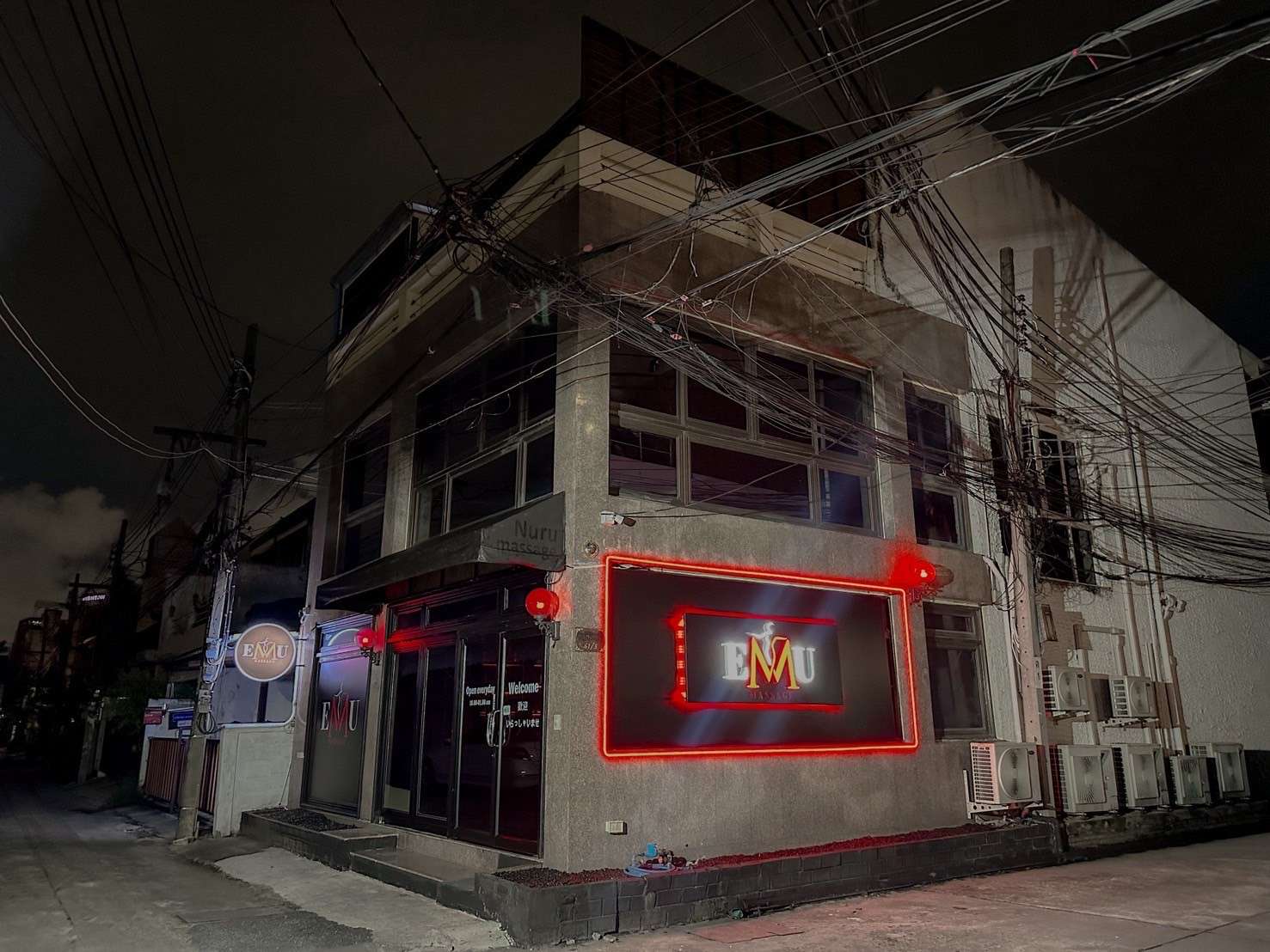 スクンビット・ソイ24へ入り、少し歩くと、白いライトの控えめな店構えが見える――EMU Massage。